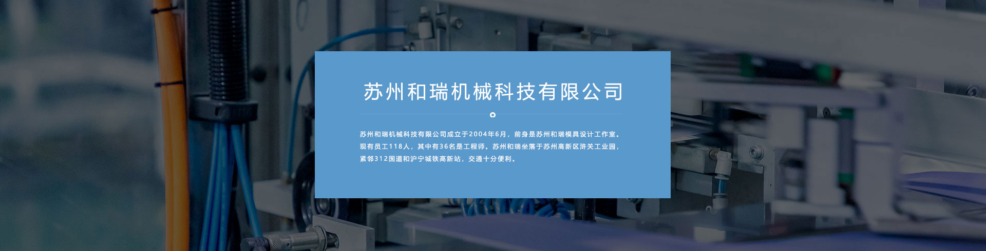 蘇州和瑞機(jī)械有限公司成立于2004年6月,前身是蘇州和瑞模具設(shè)計(jì)工作室。現(xiàn)有員工118人,其中有36名是工程師。蘇州和瑞坐落于蘇州高新區(qū)滸關(guān)工業(yè)園,緊鄰312國(guó)道和滬寧城鐵高新站,交通十分便利。